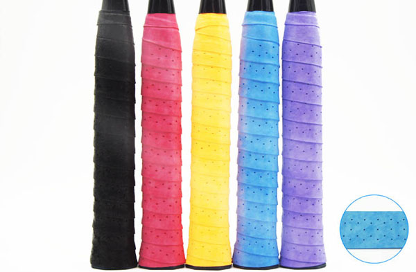 球拍綁上吸汗帶,無論你實力是頂尖的還是一般水平都是有起到幫助你實力增強和更好地保護球拍和手的東西。干性吸汗帶比黏性吸汗帶的要厚些,適合手容易出汗的人,干性吸汗帶帶有著極強的吸收力和耐久性。黏性吸汗帶通常較薄,同時也有減震作用、緩沖、增加摩擦等功能。如果你有握不牢球拍的問題,例如在網前截擊的時候就老是握不牢握把,那么黏性吸汗帶是你最好的選擇。