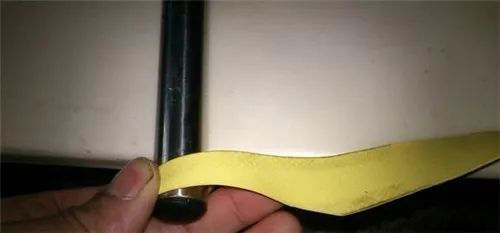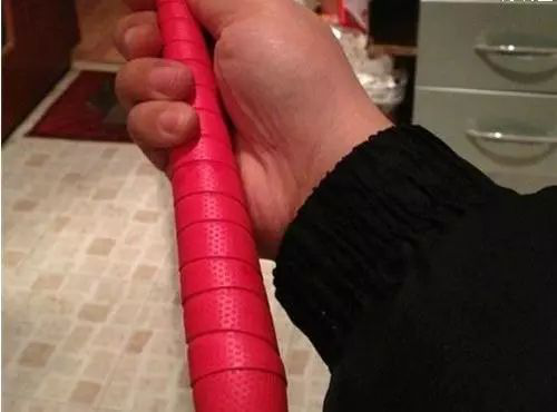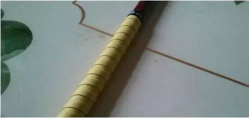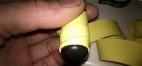 將先前剪好留有斜角的一面貼合握把末端的邊緣,然后均勻的纏繞起來,此時可稍微用點力,以防在今后使用中散掉。