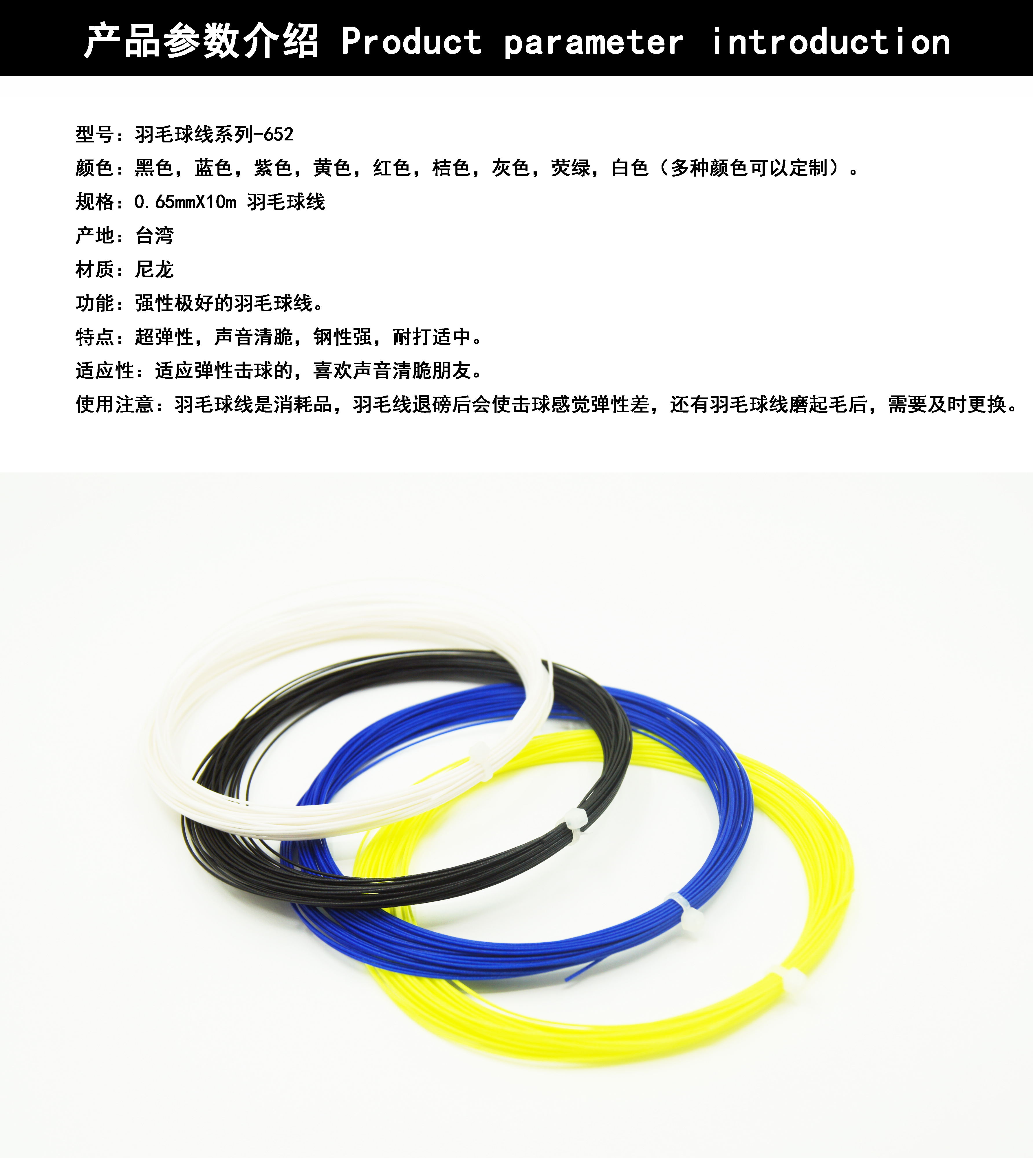 此羽線為一種特殊合成的復式砂,線的核心:以編帶的細線層層包裝,最外層在涂上一層特殊尼龍。非常有效的增加此羽線的持久力與增強擊球力量,此羽線具有優異的耐磨性及控球穩定性。